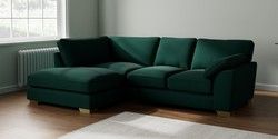 7.3.1 Buy Stamford Grand Relaxed Sit Medium Corner Chaise - Left Hand Plush Velvet Easy Clean Bottle Green Large Square Angle - Brushed Brass from the Seasons online shop Click here to use our website with more accessibility support, for example screen readers