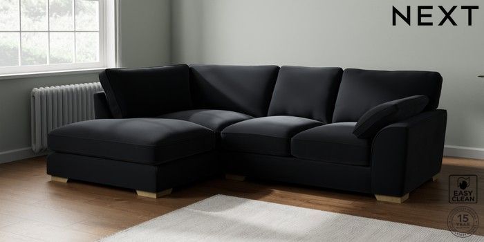 7.3.1 Buy Stamford Grand Relaxed Sit Medium Corner Chaise - Left Hand Plush Velvet Easy Clean Charcoal Grey Large Square Angle - Light from the Seasons online shop Click here to use our website with more accessibility support, for example screen readers