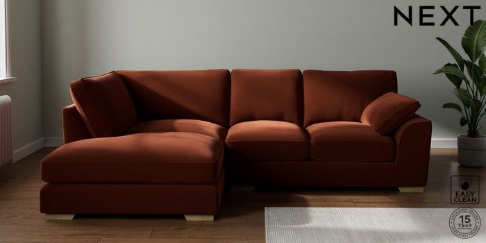 7.3.1 Buy Stamford Grand Relaxed Sit Medium Corner Chaise - Left Hand Plush Velvet Easy Clean Ginger Orange Large Square Angle - Light from the Seasons online shop Click here to use our website with more accessibility support, for example screen readers