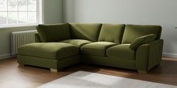 7.3.1 Buy Stamford Grand Relaxed Sit Medium Corner Chaise - Left Hand Plush Velvet Easy Clean Mid Olive Green Large Square Angle - Brushed Brass from the Seasons online shop Click here to use our website with more accessibility support, for example screen readers