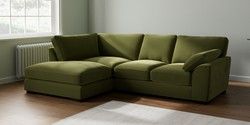 7.3.1 Buy Stamford Grand Relaxed Sit Medium Corner Chaise - Left Hand Plush Velvet Easy Clean Mid Olive Green Large Square Angle - Dark from the Seasons online shop Click here to use our website with more accessibility support, for example screen readers