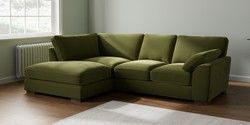 7.3.1 Buy Stamford Grand Relaxed Sit Medium Corner Chaise - Left Hand Plush Velvet Easy Clean Mid Olive Green Large Square Angle - Mid from the Seasons online shop Click here to use our website with more accessibility support, for example screen readers