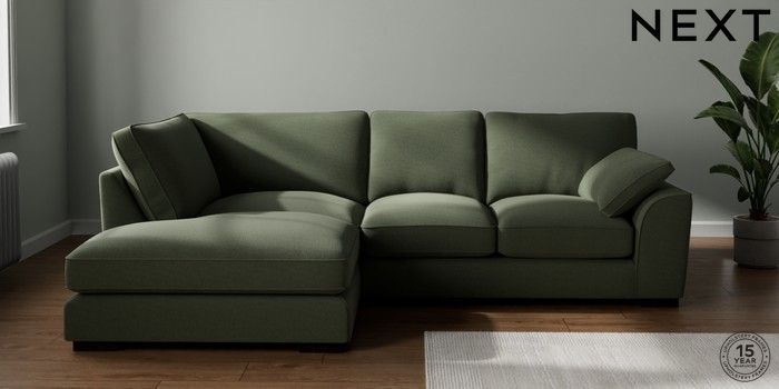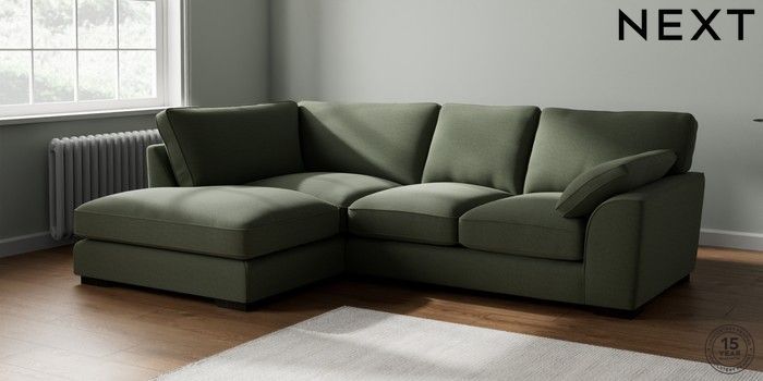 7.3.1 Buy Stamford Grand Relaxed Sit Medium Corner Chaise - Left Hand Relaxed Linen Look Dark Green Large Square Angle - Dark from the Seasons online shop Click here to use our website with more accessibility support, for example screen readers