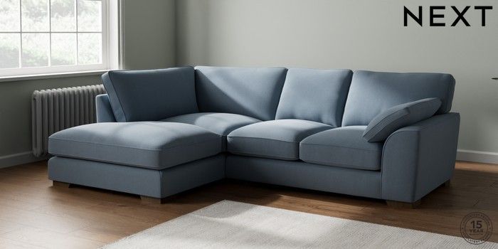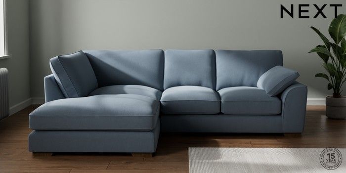 7.3.1 Buy Stamford Grand Relaxed Sit Medium Corner Chaise - Left Hand Relaxed Linen Look Mid Blue Large Square Angle - Mid from the Seasons online shop Click here to use our website with more accessibility support, for example screen readers