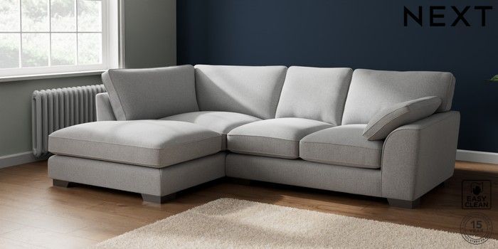 7.3.1 Buy Stamford Grand Relaxed Sit Medium Corner Chaise - Left Hand Tweedy Blend Easy Clean Light Silver Grey Large Square Angle - Gunmetal from the Seasons online shop Click here to use our website with more accessibility support, for example screen readers