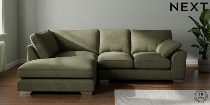 7.3.1 Buy Stamford Grand Relaxed Sit Medium Corner Chaise - Left Hand Tweedy Chenille Mid Moss Green Large Square Angle - Chrome Metal from the Seasons online shop Click here to use our website with more accessibility support, for example screen readers