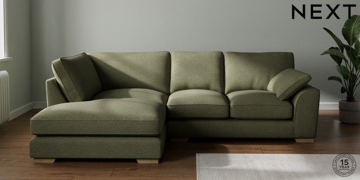 7.3.1 Buy Stamford Grand Relaxed Sit Medium Corner Chaise - Left Hand Tweedy Chenille Mid Moss Green Large Square Angle - Light from the Seasons online shop Click here to use our website with more accessibility support, for example screen readers