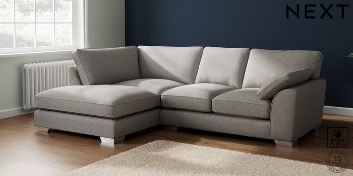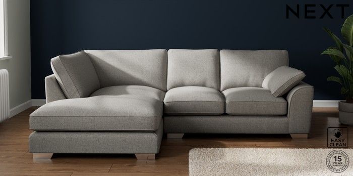 7.3.1 Buy Stamford Grand Relaxed Sit Medium Corner Chaise - Left Hand Woven Chenille Easy Clean Light Grey Large Square Angle - Chrome Metal from the Seasons online shop Click here to use our website with more accessibility support, for example screen readers