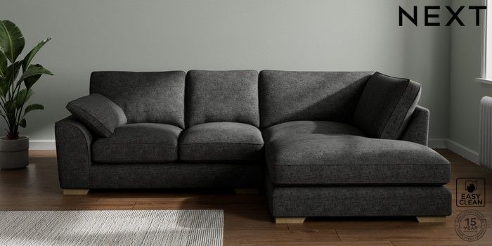 7.3.1 Buy Stamford Grand Relaxed Sit Medium Corner Chaise - Right Hand Boucle Weave Easy Clean Charcoal Grey Large Square Angle - Light from the Seasons online shop Click here to use our website with more accessibility support, for example screen readers