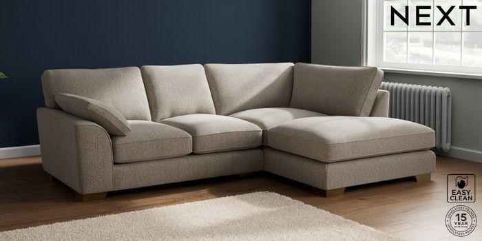 7.3.1 Buy Stamford Grand Relaxed Sit Medium Corner Chaise - Right Hand Chunky Boucle Easy Clean Dove Large Square Angle - Brushed Brass from the Seasons online shop Click here to use our website with more accessibility support, for example screen readers