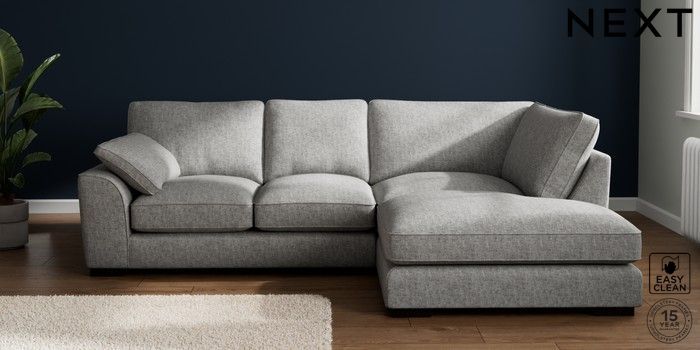 7.3.1 Buy Stamford Grand Relaxed Sit Medium Corner Chaise - Right Hand Chunky Boucle Easy Clean Light Grey Large Square Angle - Dark from the Seasons online shop Click here to use our website with more accessibility support, for example screen readers