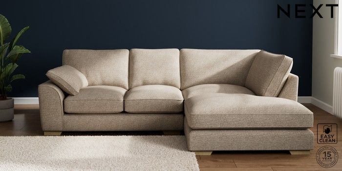 7.3.1 Buy Stamford Grand Relaxed Sit Medium Corner Chaise - Right Hand Chunky Boucle Easy Clean Mid Natural Large Square Angle - Light from the Seasons online shop Click here to use our website with more accessibility support, for example screen readers