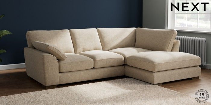7.3.1 Buy Stamford Grand Relaxed Sit Medium Corner Chaise - Right Hand Chunky Weave Cream Large Square Angle - Mid from the Seasons online shop Click here to use our website with more accessibility support, for example screen readers