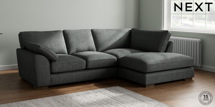 7.3.1 Buy Stamford Grand Relaxed Sit Medium Corner Chaise - Right Hand Cotswold Chenille Dark Grey Large Square Angle - Mid from the Seasons online shop Click here to use our website with more accessibility support, for example screen readers