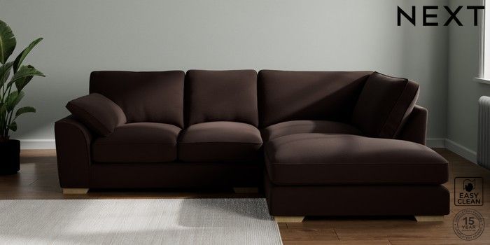 7.3.1 Buy Stamford Grand Relaxed Sit Medium Corner Chaise - Right Hand Fine Chenille Easy Clean Chocolate Brown Large Square Angle - Light from the Seasons online shop Click here to use our website with more accessibility support, for example screen readers