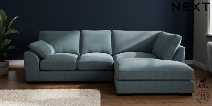 7.3.1 Buy Stamford Grand Relaxed Sit Medium Corner Chaise - Right Hand Fine Chenille Easy Clean Mid Blue Large Square Angle - Dark from the Seasons online shop Click here to use our website with more accessibility support, for example screen readers