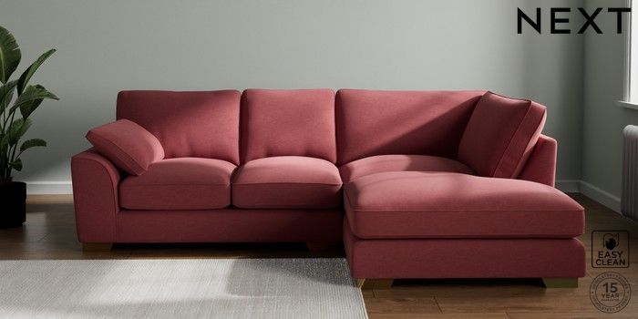 7.3.1 Buy Stamford Grand Relaxed Sit Medium Corner Chaise - Right Hand Fine Chenille Easy Clean Mid Pink Large Square Angle - Brushed Brass from the Seasons online shop Click here to use our website with more accessibility support, for example screen readers