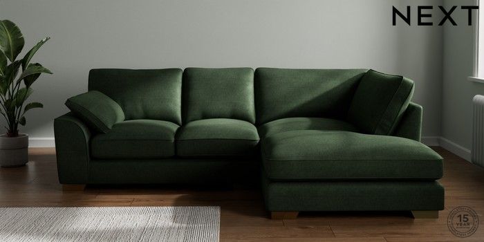 7.3.1 Buy Stamford Grand Relaxed Sit Medium Corner Chaise - Right Hand Luxe Chenille Dark Green Large Square Angle - Brushed Brass from the Seasons online shop Click here to use our website with more accessibility support, for example screen readers