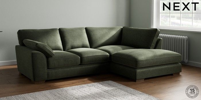 7.3.1 Buy Stamford Grand Relaxed Sit Medium Corner Chaise - Right Hand Luxe Chenille Mid Green Large Square Angle - Mid from the Seasons online shop Click here to use our website with more accessibility support, for example screen readers