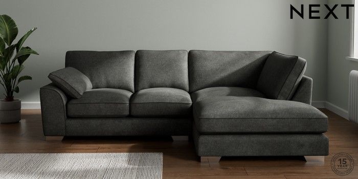 7.3.1 Buy Stamford Grand Relaxed Sit Medium Corner Chaise - Right Hand Plush Chenille Dark Grey Large Square Angle - Chrome Metal from the Seasons online shop Click here to use our website with more accessibility support, for example screen readers