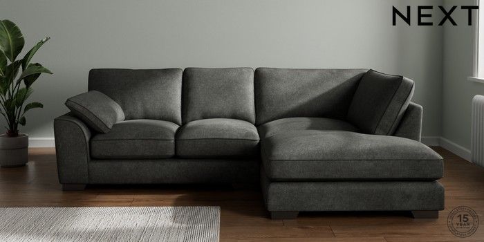7.3.1 Buy Stamford Grand Relaxed Sit Medium Corner Chaise - Right Hand Plush Chenille Dark Grey Large Square Angle - Gunmetal from the Seasons online shop Click here to use our website with more accessibility support, for example screen readers