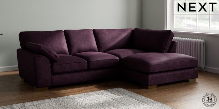 7.3.1 Buy Stamford Grand Relaxed Sit Medium Corner Chaise - Right Hand Plush Chenille Dark Plum Purple Large Square Angle - Brushed Brass from the Seasons online shop Click here to use our website with more accessibility support, for example screen readers