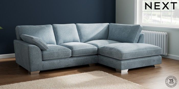 7.3.1 Buy Stamford Grand Relaxed Sit Medium Corner Chaise - Right Hand Plush Chenille Light Blue Large Square Angle - Chrome Metal from the Seasons online shop Click here to use our website with more accessibility support, for example screen readers