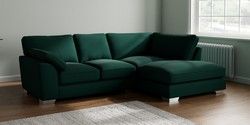 7.3.1 Buy Stamford Grand Relaxed Sit Medium Corner Chaise - Right Hand Plush Velvet Easy Clean Bottle Green Large Square Angle - Chrome Metal from the Seasons online shop
