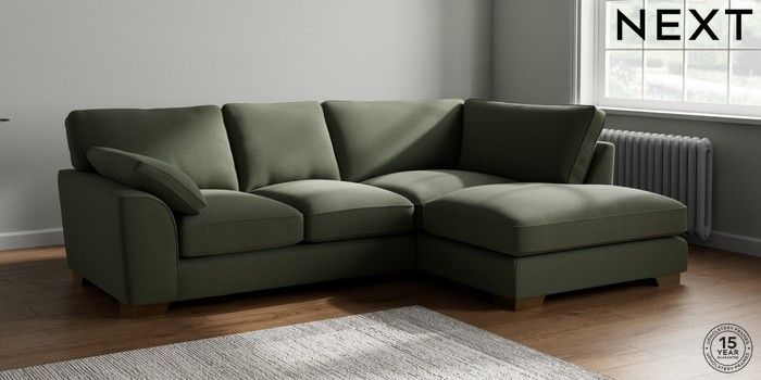 7.3.1 Buy Stamford Grand Relaxed Sit Medium Corner Chaise - Right Hand Relaxed Linen Look Dark Green Large Square Angle - Brushed Brass from the Seasons online shop Click here to use our website with more accessibility support, for example screen readers