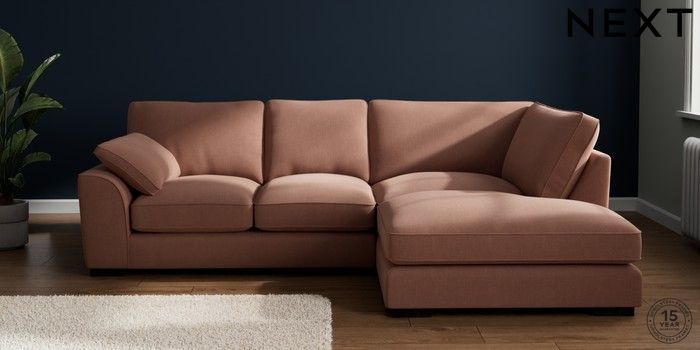 7.3.1 Buy Stamford Grand Relaxed Sit Medium Corner Chaise - Right Hand Relaxed Linen Look Light Rust Brown Large Square Angle - Dark from the Seasons online shop Click here to use our website with more accessibility support, for example screen readers