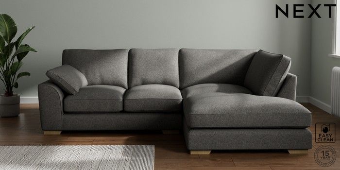 7.3.1 Buy Stamford Grand Relaxed Sit Medium Corner Chaise - Right Hand Tweedy Blend Easy Clean Dark Grey Large Square Angle - Light from the Seasons online shop Click here to use our website with more accessibility support, for example screen readers