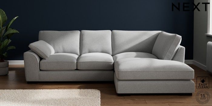 7.3.1 Buy Stamford Grand Relaxed Sit Medium Corner Chaise - Right Hand Tweedy Blend Easy Clean Light Silver Grey Large Square Angle - Dark from the Seasons online shop Click here to use our website with more accessibility support, for example screen readers