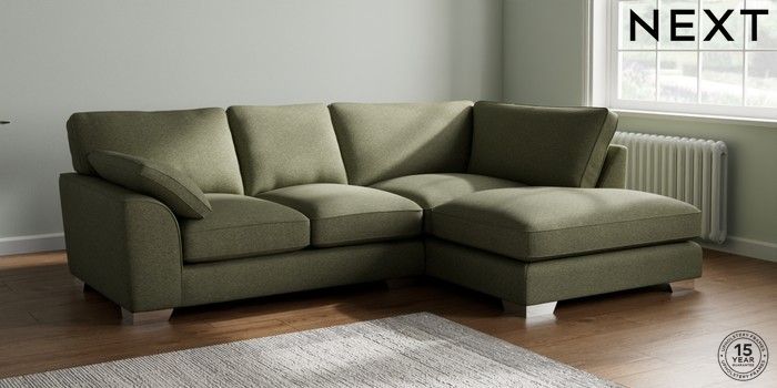 7.3.1 Buy Stamford Grand Relaxed Sit Medium Corner Chaise - Right Hand Tweedy Chenille Mid Moss Green Large Square Angle - Chrome Metal from the Seasons online shop Click here to use our website with more accessibility support, for example screen readers