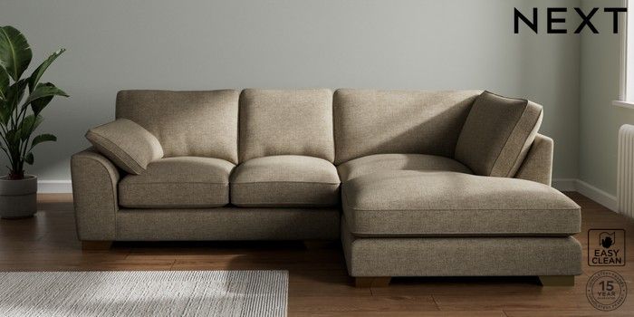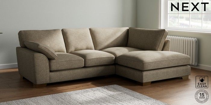 7.3.1 Buy Stamford Grand Relaxed Sit Medium Corner Chaise - Right Hand Woven Chenille Easy Clean Mid Natural Large Square Angle - Brushed Brass from the Seasons online shop Click here to use our website with more accessibility support, for example screen readers