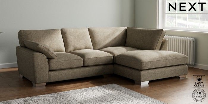 7.3.1 Buy Stamford Grand Relaxed Sit Medium Corner Chaise - Right Hand Woven Chenille Easy Clean Mid Natural Large Square Angle - Chrome Metal from the Seasons online shop Click here to use our website with more accessibility support, for example screen readers