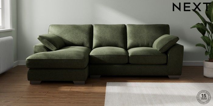 7.3.1 Buy Stamford Grand Relaxed Sit Medium Sofa Chaise - Left Hand Boucle Chenille Dark Moss Green Large Square Angle - Gunmetal from the Seasons online shop Click here to use our website with more accessibility support, for example screen readers