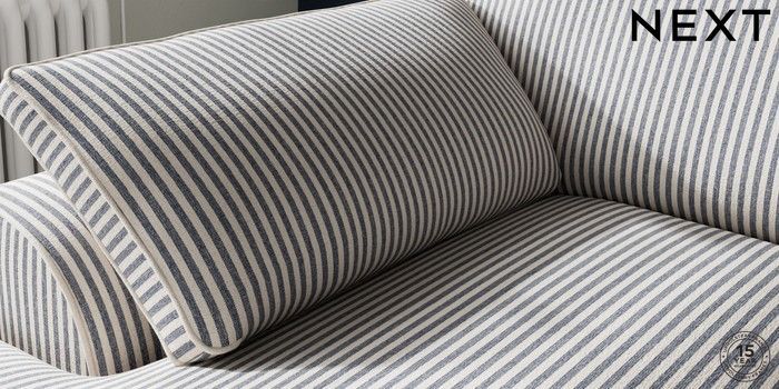 7.3.1 Buy Stamford Grand Relaxed Sit Medium Sofa Chaise - Left Hand Chenille Stripe Slate Blue Large Square Angle - Chrome Metal from the Seasons online shop Click here to use our website with more accessibility support, for example screen readers