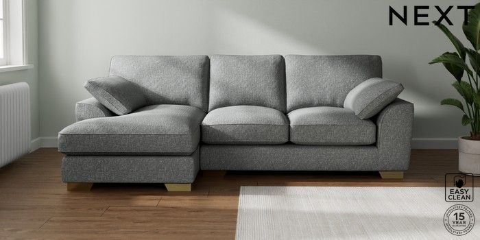 7.3.1 Buy Stamford Grand Relaxed Sit Medium Sofa Chaise - Left Hand Chunky Boucle Easy Clean Mid Grey Large Square Angle - Brushed Brass from the Seasons online shop Click here to use our website with more accessibility support, for example screen readers