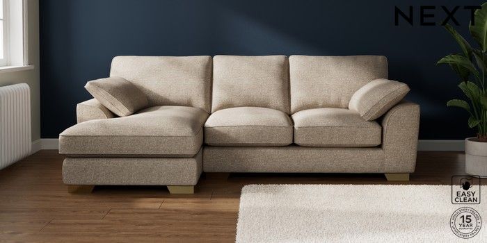 7.3.1 Buy Stamford Grand Relaxed Sit Medium Sofa Chaise - Left Hand Chunky Boucle Easy Clean Mid Natural Large Square Angle - Brushed Brass from the Seasons online shop Click here to use our website with more accessibility support, for example screen readers