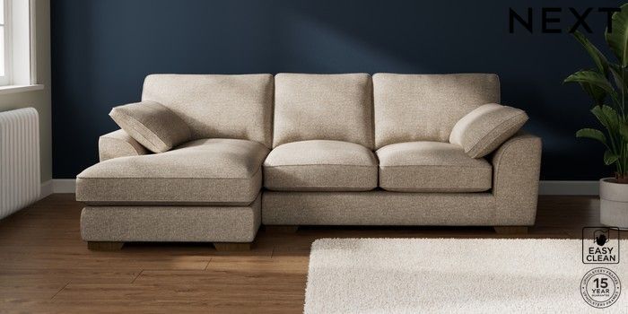 7.3.1 Buy Stamford Grand Relaxed Sit Medium Sofa Chaise - Left Hand Chunky Boucle Easy Clean Mid Natural Large Square Angle - Mid from the Seasons online shop Click here to use our website with more accessibility support, for example screen readers