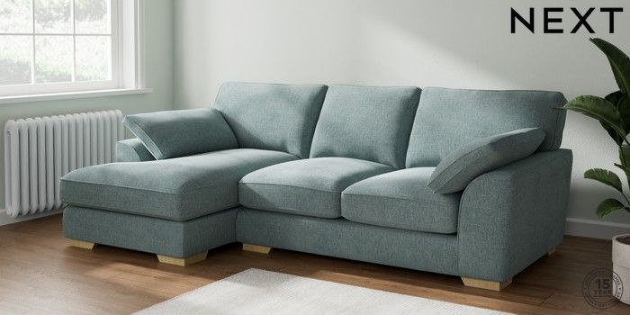 7.2.10 Buy Stamford Grand Relaxed Sit Medium Sofa Chaise - Left Hand Chunky Chenille Light Teal Green Large Square Angle - Light from the Seasons online shop Click here to use our website with more accessibility support, for example screen readers