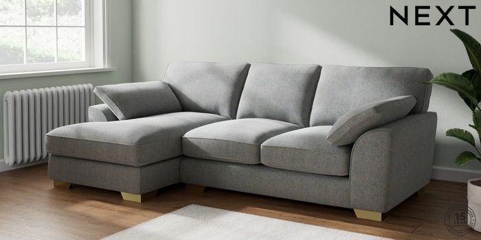 7.3.1 Buy Stamford Grand Relaxed Sit Medium Sofa Chaise - Left Hand Chunky Marl Mid Grey Large Square Angle - Brushed Brass from the Seasons online shop Click here to use our website with more accessibility support, for example screen readers