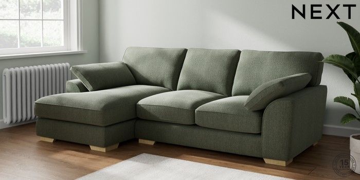 7.2.10 Buy Stamford Grand Relaxed Sit Medium Sofa Chaise - Left Hand Chunky Texture Mid Forest Green Large Square Angle - Light from the Seasons online shop Click here to use our website with more accessibility support, for example screen readers