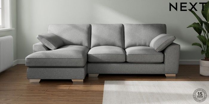 7.3.1 Buy Stamford Grand Relaxed Sit Medium Sofa Chaise - Left Hand Chunky Weave Mid Grey Large Square Angle - Chrome Metal from the Seasons online shop Click here to use our website with more accessibility support, for example screen readers