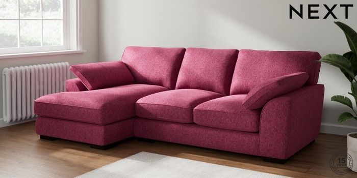 7.2.10 Buy Stamford Grand Relaxed Sit Medium Sofa Chaise - Left Hand Cotswold Chenille Dark Raspberry Pink Large Square Angle - Dark from the Seasons online shop Click here to use our website with more accessibility support, for example screen readers