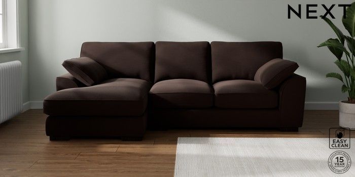 7.3.1 Buy Stamford Grand Relaxed Sit Medium Sofa Chaise - Left Hand Fine Chenille Easy Clean Chocolate Brown Large Square Angle - Dark from the Seasons online shop Click here to use our website with more accessibility support, for example screen readers