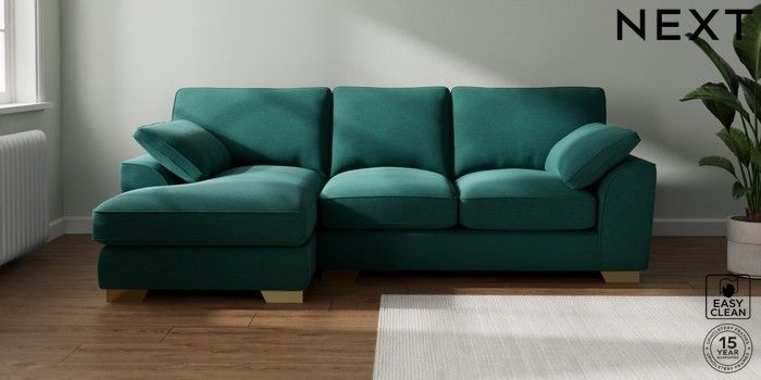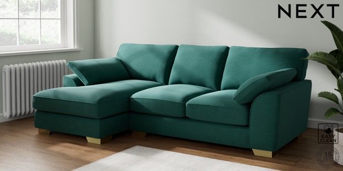 7.3.1 Buy Stamford Grand Relaxed Sit Medium Sofa Chaise - Left Hand Fine Chenille Easy Clean Dark Juniper Green Large Square Angle - Brushed Brass from the Seasons online shop Click here to use our website with more accessibility support, for example screen readers