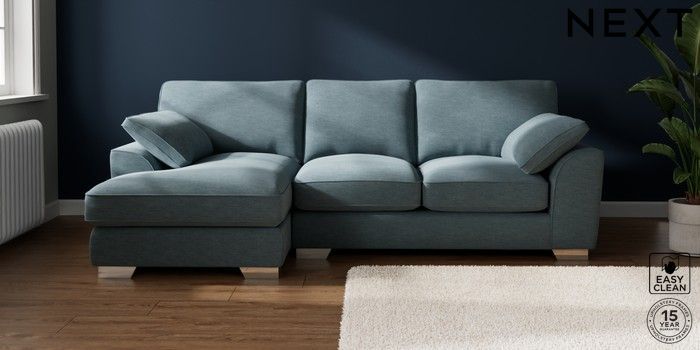 7.3.1 Buy Stamford Grand Relaxed Sit Medium Sofa Chaise - Left Hand Fine Chenille Easy Clean Mid Blue Large Square Angle - Chrome Metal from the Seasons online shop Click here to use our website with more accessibility support, for example screen readers