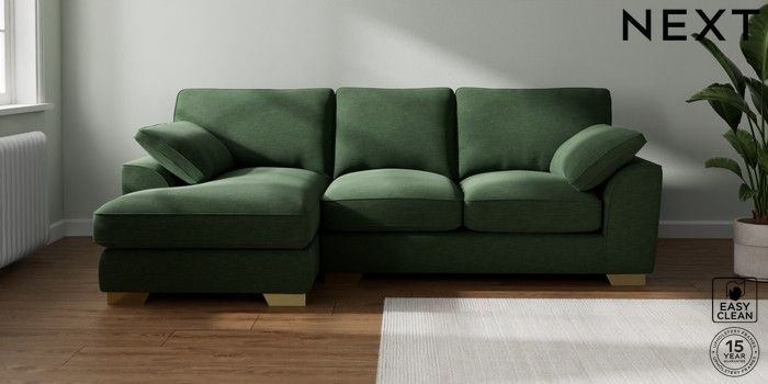 7.3.1 Buy Stamford Grand Relaxed Sit Medium Sofa Chaise - Left Hand Fine Chenille Easy Clean Mid Khaki Green Large Square Angle - Brushed Brass from the Seasons online shop Click here to use our website with more accessibility support, for example screen readers
