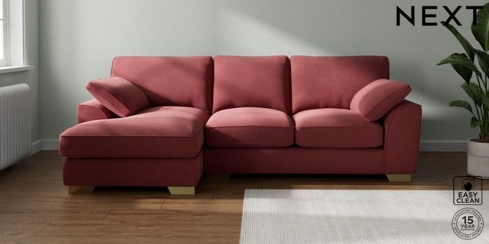 7.3.1 Buy Stamford Grand Relaxed Sit Medium Sofa Chaise - Left Hand Fine Chenille Easy Clean Mid Pink Large Square Angle - Brushed Brass from the Seasons online shop Click here to use our website with more accessibility support, for example screen readers